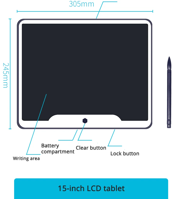 Aibevi 15-дюймовый цветной ЖК-планшет для письма электронная маленькая доска Безбумажная офисная доска для письма 15 дюймов со стилусом