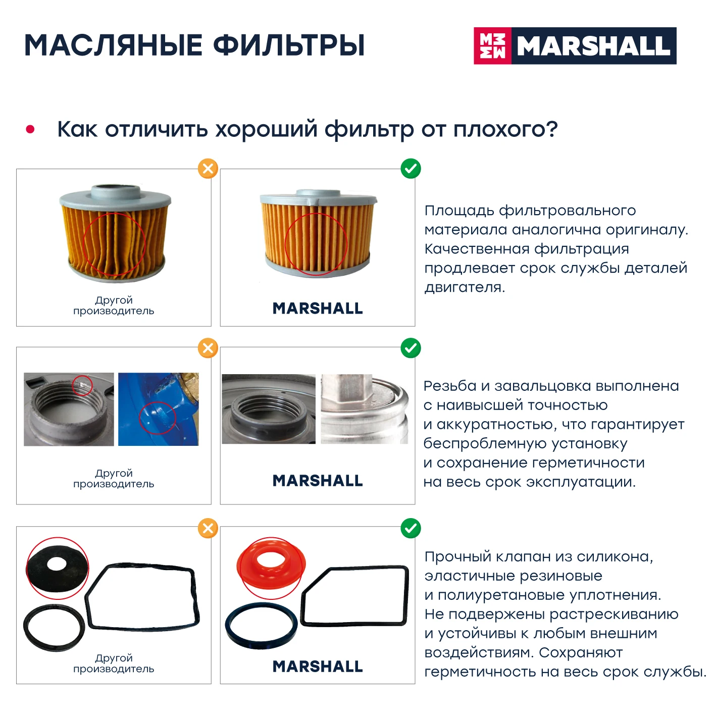 Фильтр масляный ML1111В фильтрах MARSHALL используется фильтровальный материал лучших мировых производителей - Ahlstrom (Финляндия) и Hollingsworth & Vose (США). Размер и конфигурация полностью соответствуют оригинальной продукции. Уплотнительные элементы и клапаны изготовлены из силикона и резины повышенной прочности. Они устойчивы к температурным и прочим внешним воздействиям и обеспечивают герметичность в течении всего срока эксплуатации фильтра.