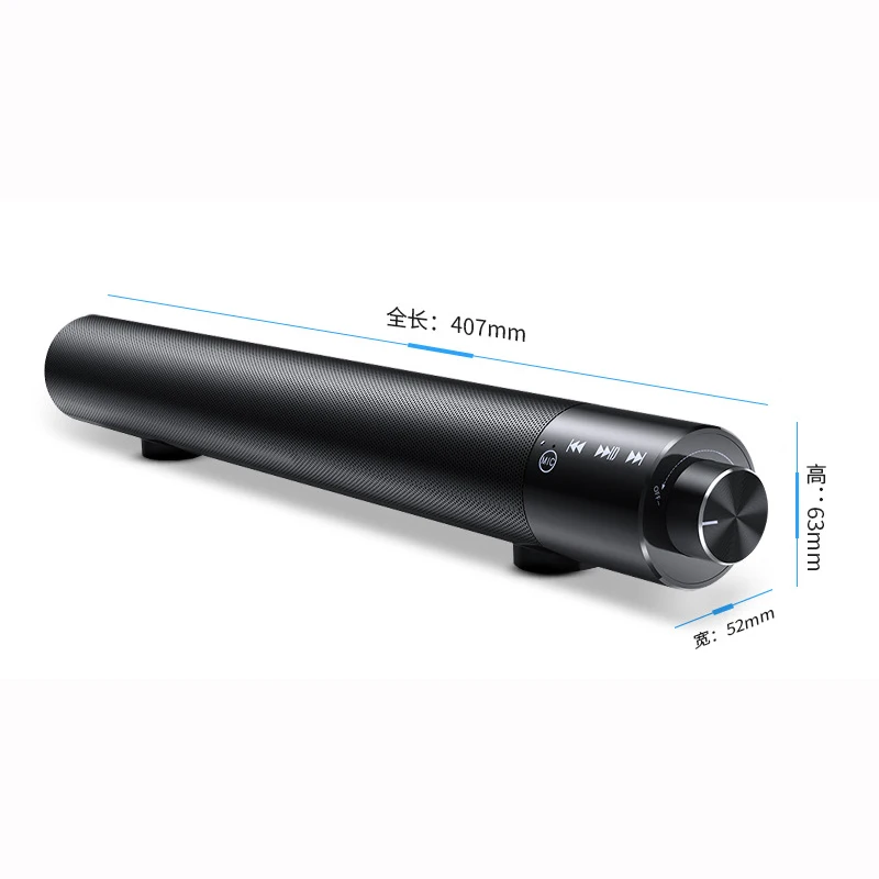 Материал корпуса: алюминиевый профиль Размер изделия: 407 мм * 52 мм * 63 мм динамик: 2 динамика s, 2 диафрагмы Емкость батареи: 5200 мАч Цвет: черный Источник питания: постоянный ток 3,7 в сопротивление: 4 Ом Вход: 3,5 мм AUX Выходная мощность: 5Wx2 Частотный диапазон: 100 Гц-18 кГц Bluetooth: Bluetooth 5,0