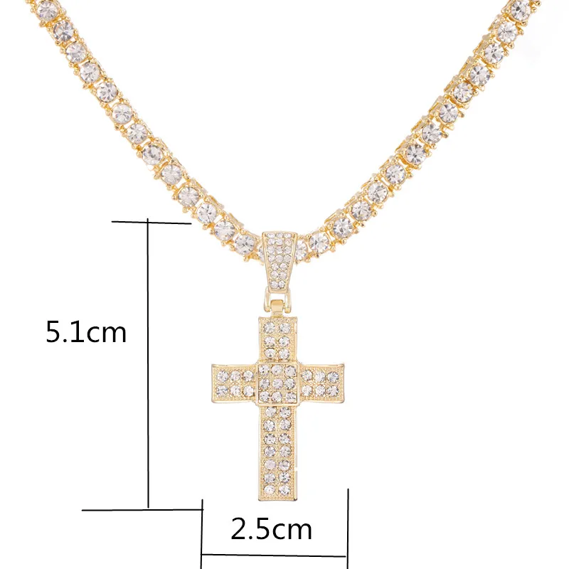 Хип-хоп крест кулон цепь для мужчин женщин подарки 2 цвета геометрические циркониевые ожерелья Bling Стразы паве ожерелье