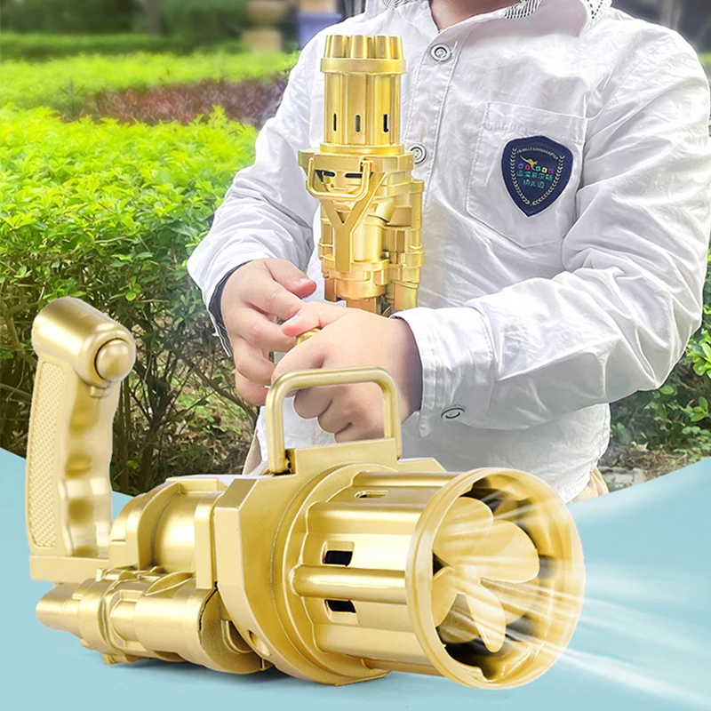 [Идеальный подарок]: Gatling Bubble Machine-большой сюрприз для детей, которым нравится как гатлинг, так и пузырчатая машина. Может использоваться