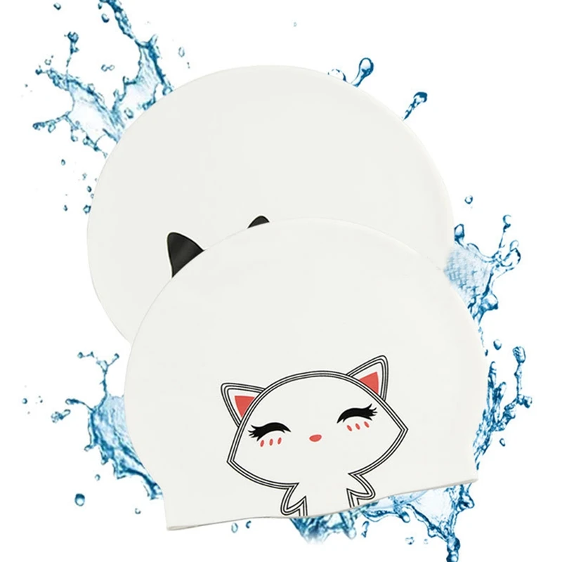 Шапочка для плавания для мужчин и женщин, водонепроницаемая шапочка для плавания с принтом кота, силиконовая резиновая Водонепроницаемая спортивная шапка, удлиненная Крышка для головы