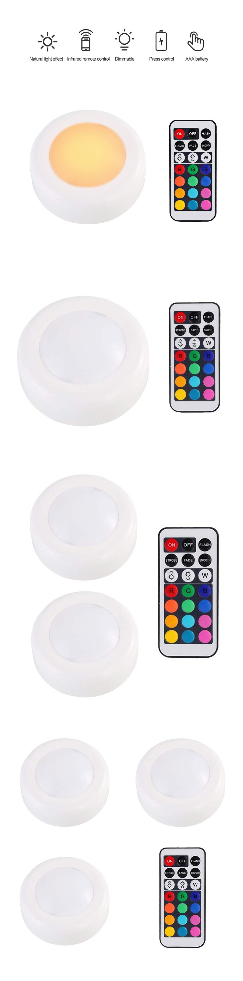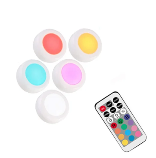 Светодиодный светильник для шкафа с батареей RGB цвет Шайба светильник с регулируемой яркостью под полкой кухонный счетчик светильник ing пульт дистанционного управления ночной Светильник