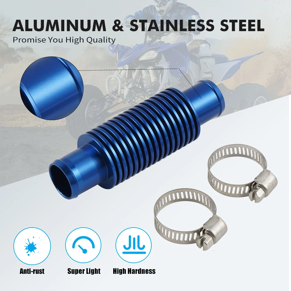 【 Ультра-большое охлаждение 】 17 плавников работают вместе, чтобы уменьшить температуру на 10-15 ℃. Он имеет большую площадь охлаждения, чем на складе, что значительно улучшает производительность вашего двигателя.【 Алюминий и нержавеющая сталь 】изготовлен из алюминия и нержавеющей стали. Алюминиевый материал также помогает охладить температуру для его мгновенного отведения тепла.【CNC Machining】Machined с ЧПУ. Высокая точность и надежное качество абсолютно гарантированы.【Премиум пальто 】с анодированной отделкой, это делает ваш ATV выглядеть умным и эффектным. Не легко носить и долговечно.【Perfect Fitment】The охладители Общая длина составляет 3,54 "дюймов и подходит для 0,76" Внутренний диаметр шланга, универсальный фитинг, отлично подходит для ATV/UTV. Для получения более подробной информации см. Список совместимости