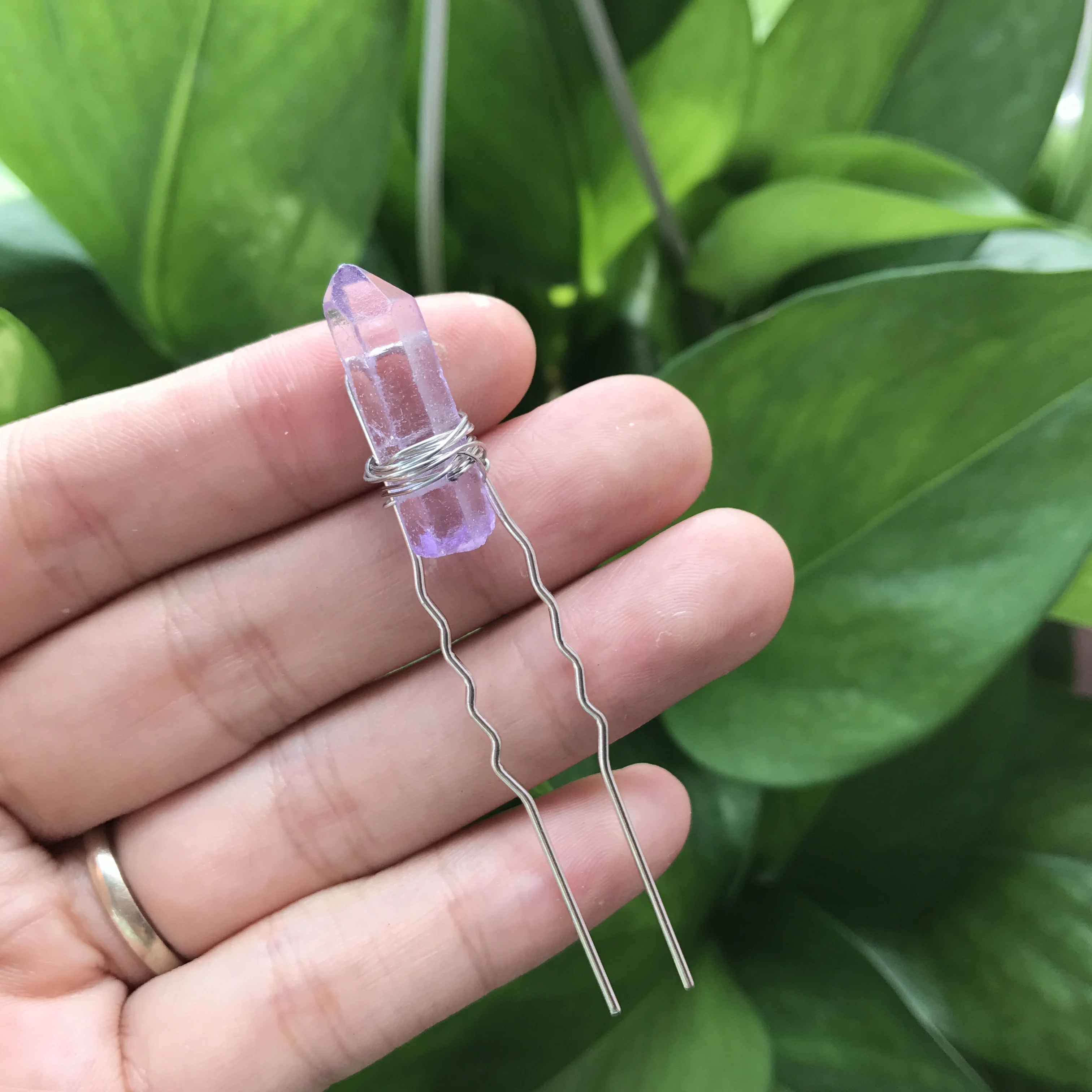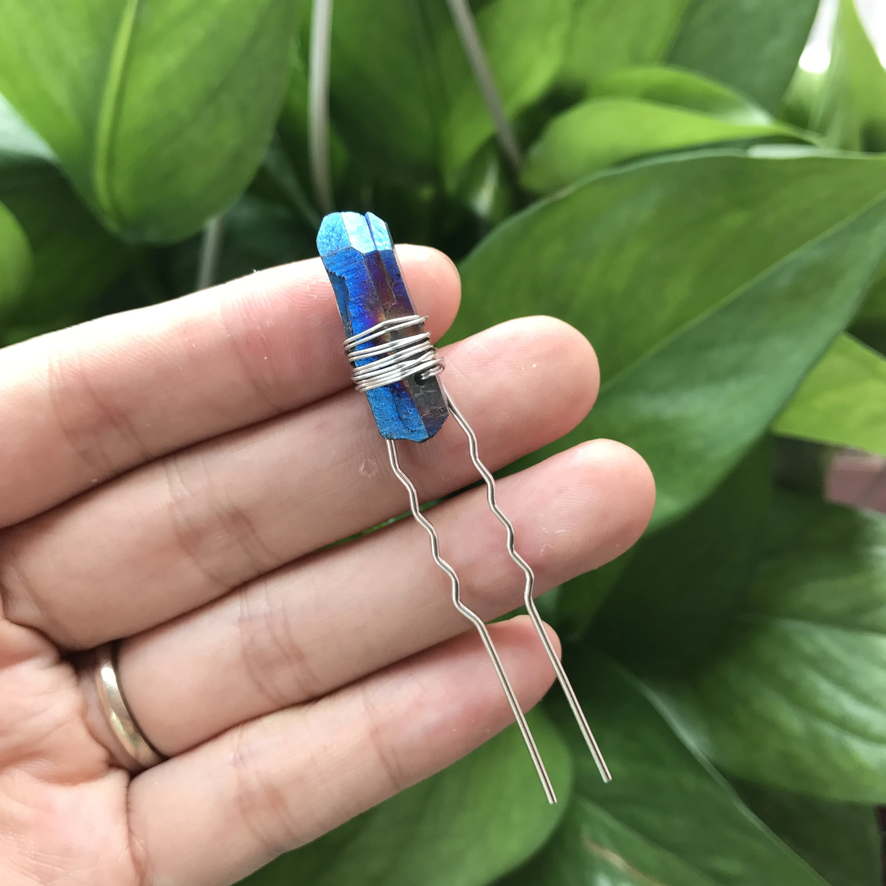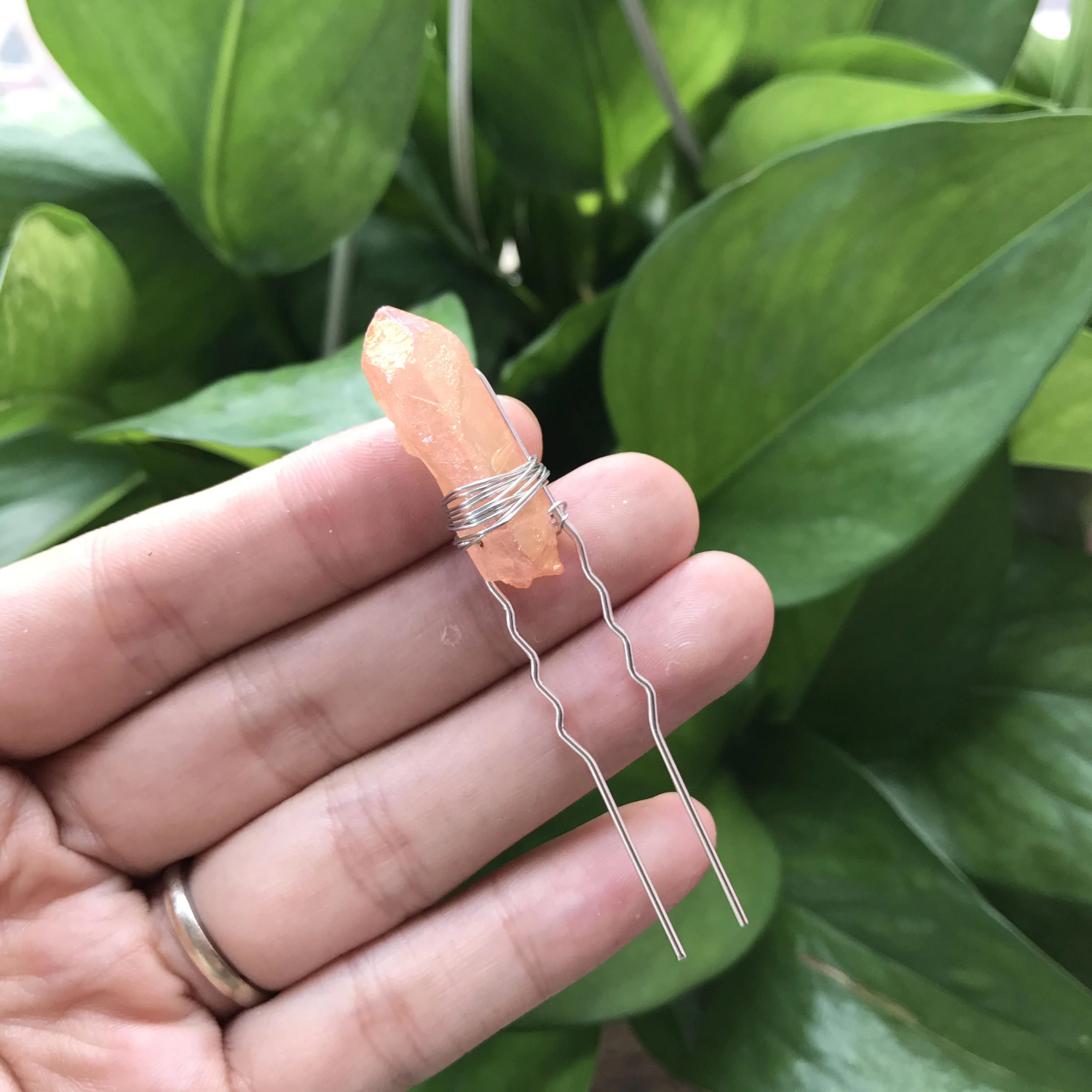 Отзывы о Красочные необработанные кварцевые заколки для волос тиара серебристая