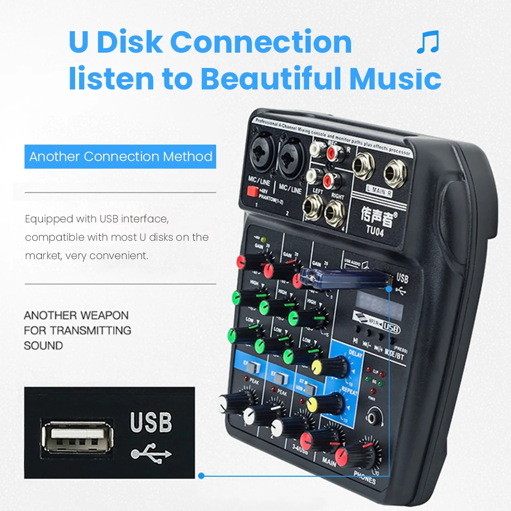 -Профессиональный 4-канальный микшерный пульт и траектории монитора Плюс процессор эффектов с двумя моноканалами и одним стерео ленточным каналом