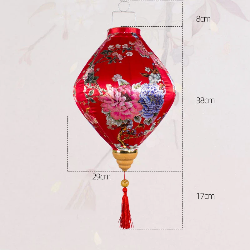 -Это традиционные подвесные фонарики ручной работы, изготовленные из шелкового материала с элегантным цветочным узором, которые делают его изысканным и красивым.
