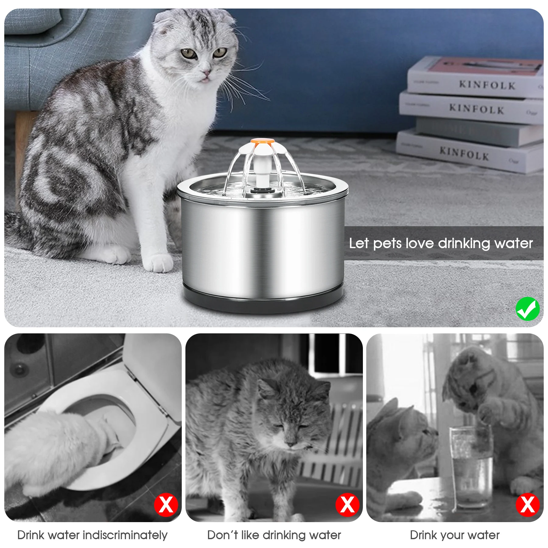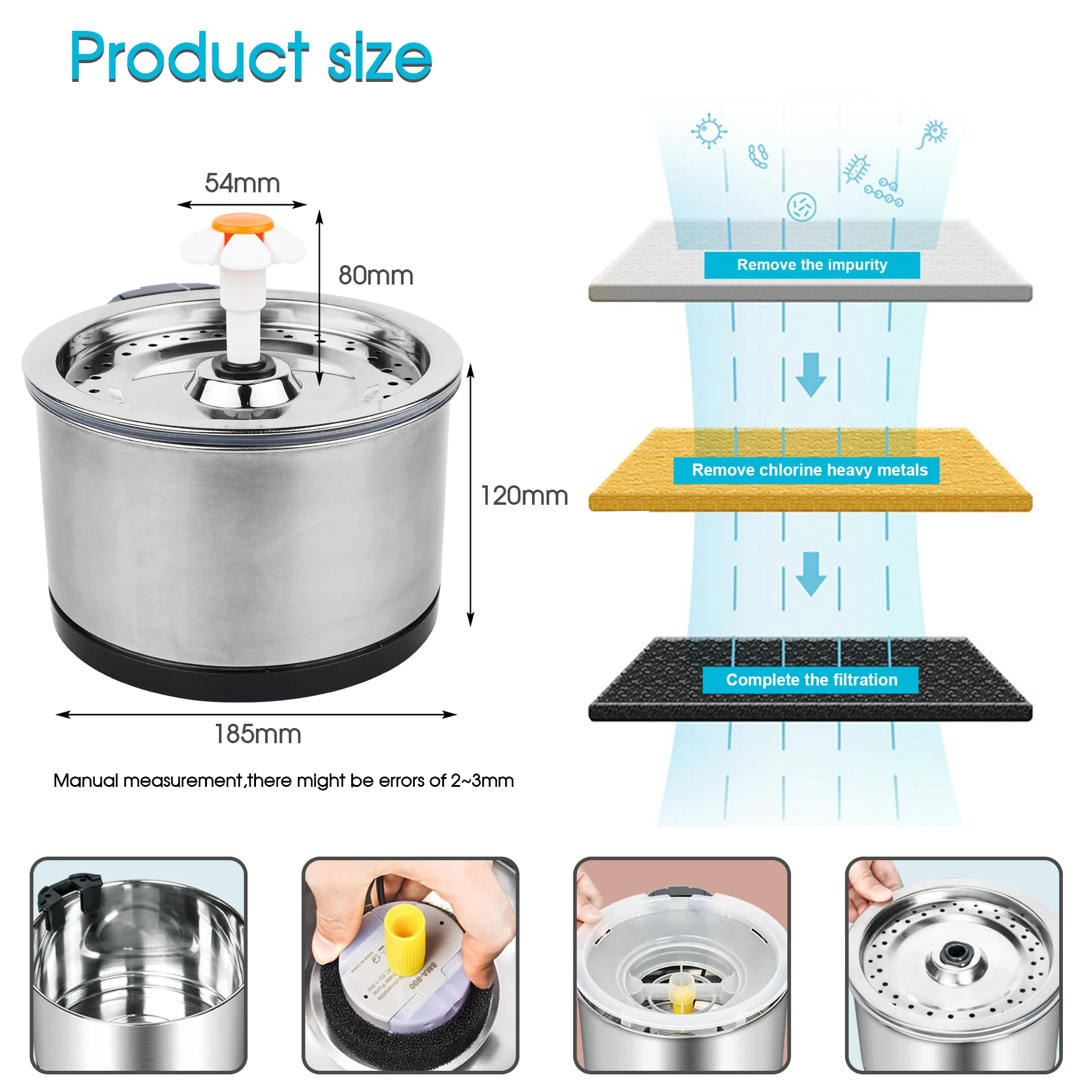 1. Питьевой фонтан для кошек изготовлен из нержавеющей стали 304. Ручная стирка и безопасность в посудомоечной машине. Этот питьевой фонтан бьет обычный пластик и делает вашего питомца более здоровым.