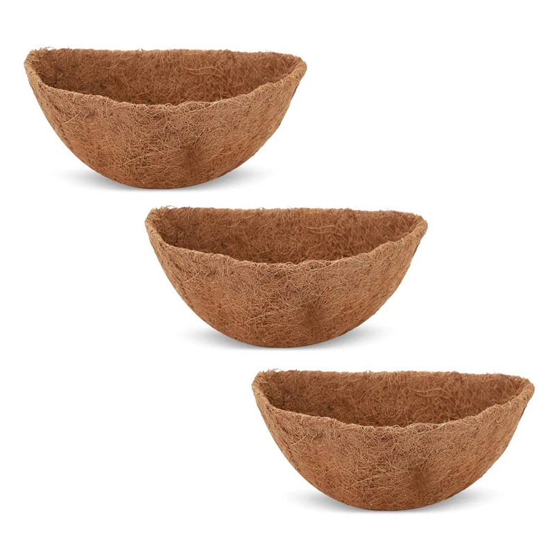 Предварительно сформированный полукруглый кокосовый вкладыш очень хорошо подходит для многих настенных подвесных корзин и поднимает ваше живое пространство.