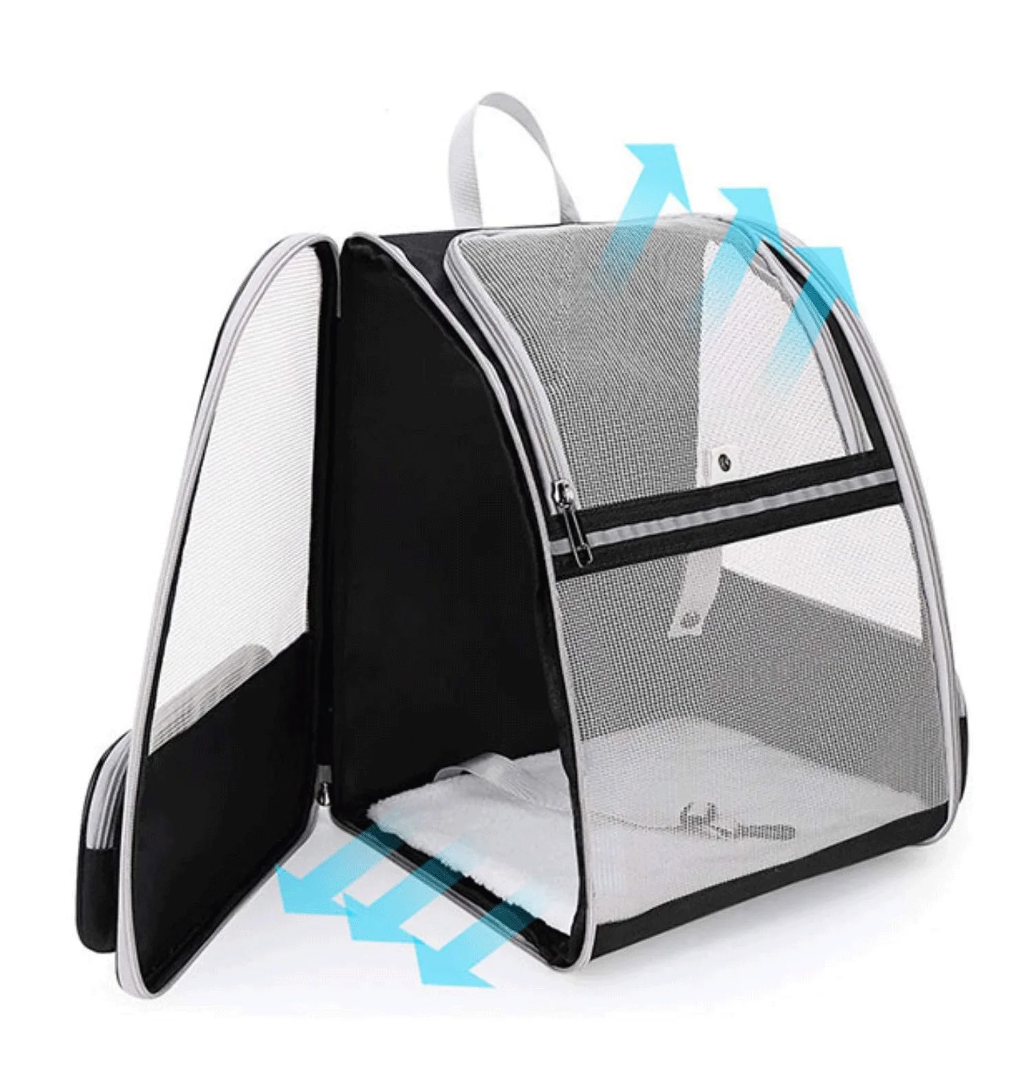 Передний вход на молнии, внутренняя часть сетки хорошо вентилируется, чтобы животное могло соприкоснуться с внешним миром.