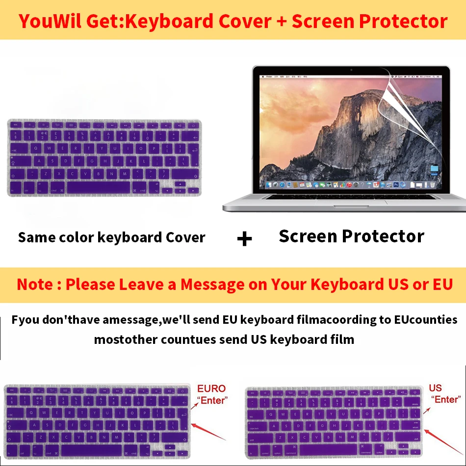 1 × чехол для ноутбука + 1 × защита экрана + 1 × чехол для клавиатуры
