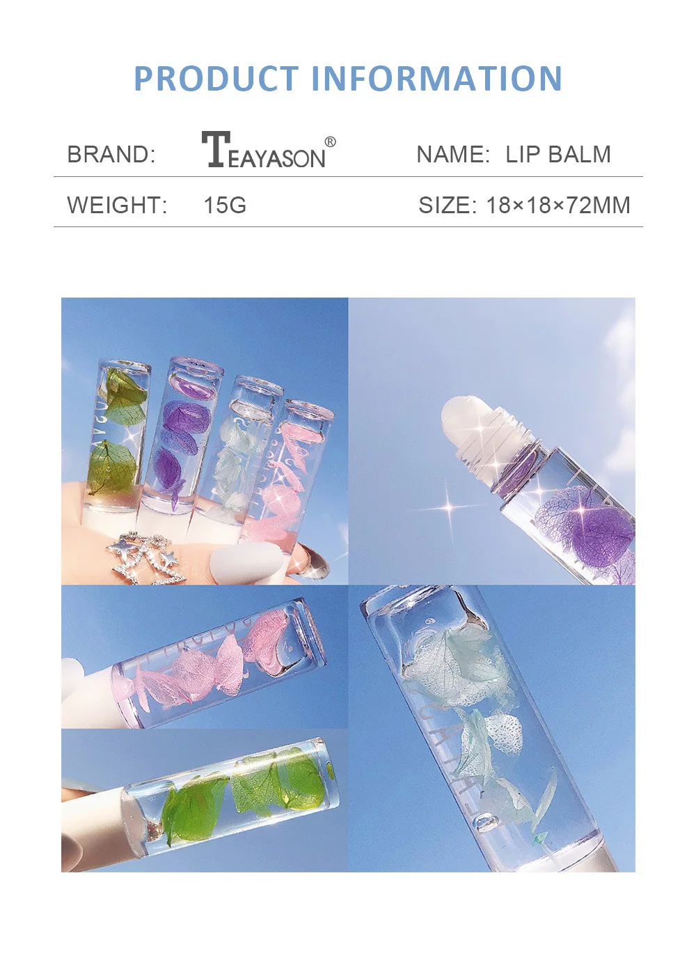 Продукт представляет собой прозрачный цвет с небольшим жемчугом, который используется для базового макияжа губ или увлажняющего макияжа губ для предотвращения сухости губ.