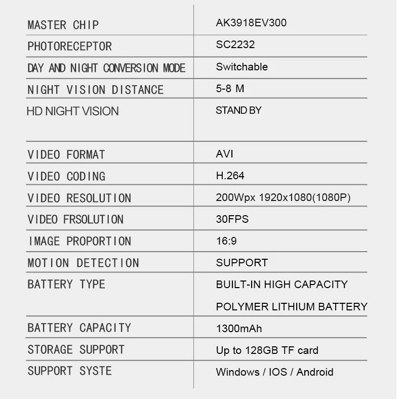 Локальное хранилище TF: 32 ГБ, полнодневная запись, Справочное значение времени: HD (720P) = 10 дней