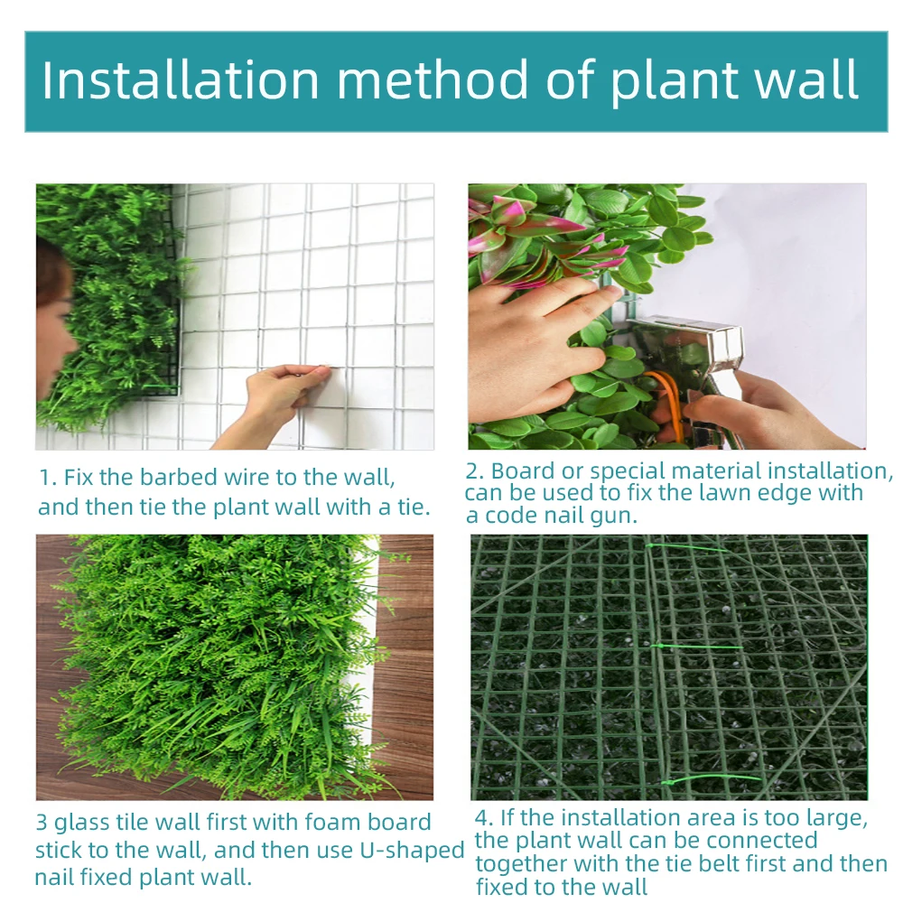Нет необходимости в солнечном свете, нет необходимости в поливе, простая установка, в зависимости от площади, которую вам нужно объединить (1 шт. = 40 см * 60 см = 0,24 квадратных метров)