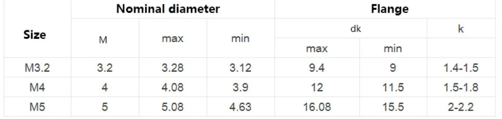 К примеру: M3.2 + 10 мм (диаметр составляет 3,2 мм, а длина составляет 10 мм.)