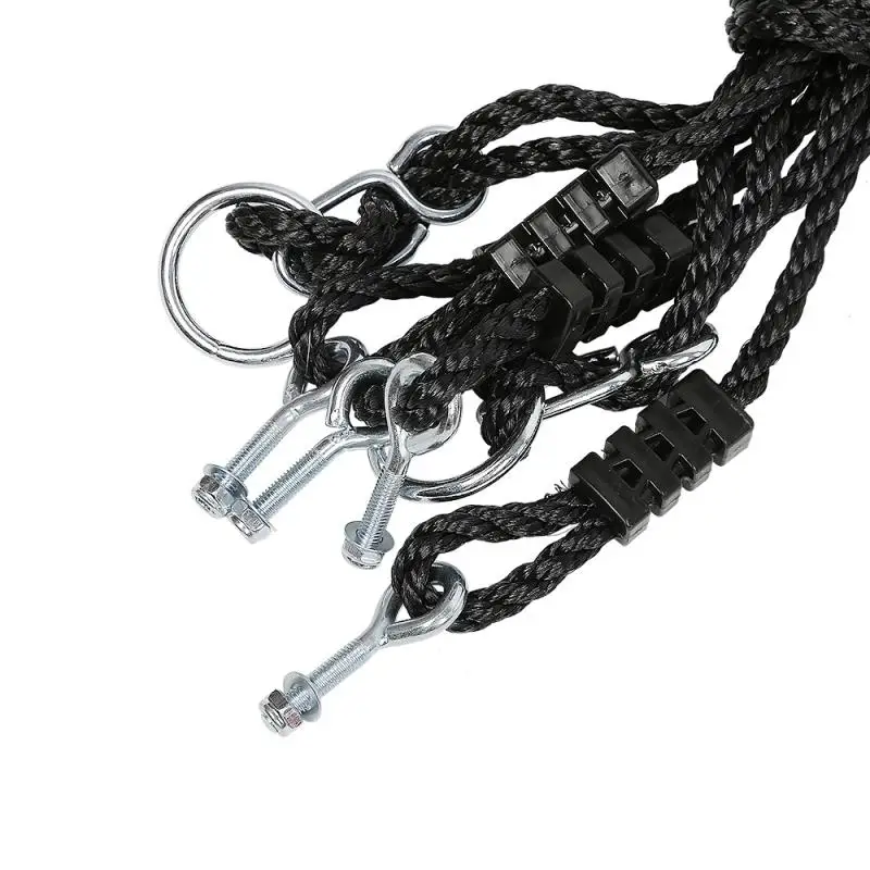 6. Качающийся канат прочный и долговечный, не легко сломать. Полипропиленовый пластик + анти-УФ ингредиенты используются для повышения производительности против старения. Он также имеет защиту от солнца, чтобы замедлить скорость старения и увеличить срок службы.