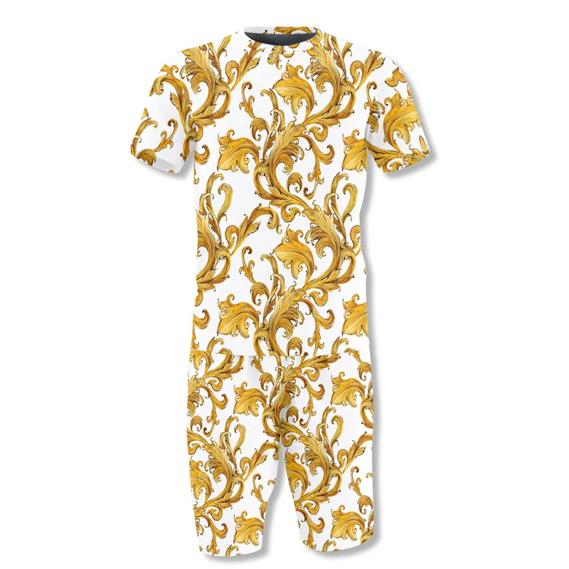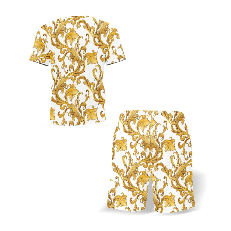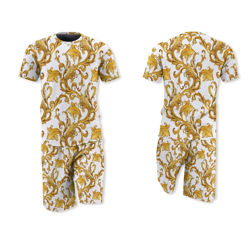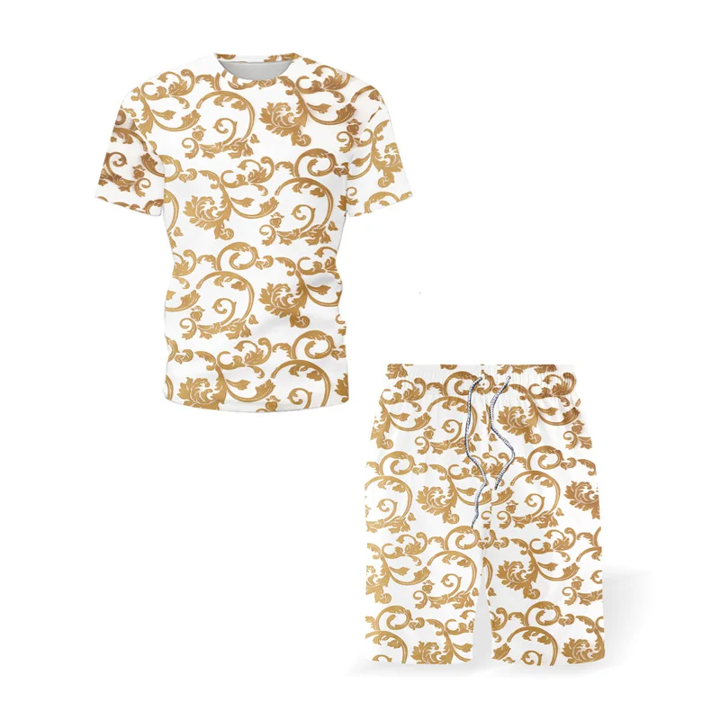 Ретро этнический Элемент печатная рубашка с коротким рукавом мужские летние шорты костюм модная футболка комплект из двух предметов 2022 тренд повседневная одежда