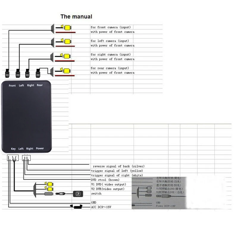 Рабочая мощность системы: 9-30 в. (Источник питания для камер такой же, как входное напряжение системы, в транспортном средстве 24 В, пожалуйста, используйте камеры 24 В)