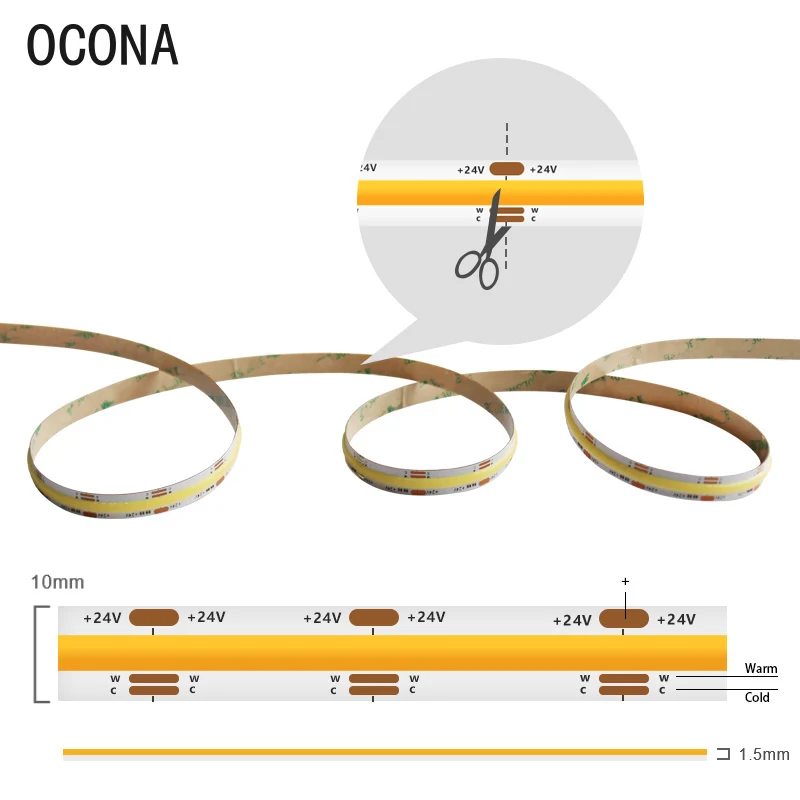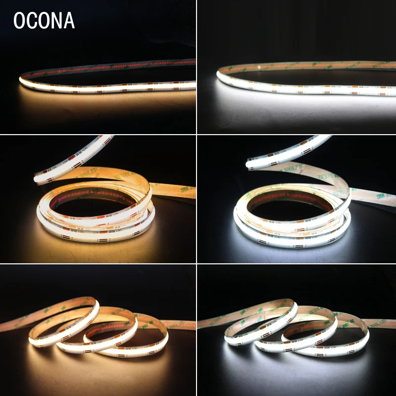 OCONA Изменяемая цветовая температура DC 12V 24V COB светодиодные полосы света ленты 576 светодиодов высокой плотности гибкий Теплый/Природа/холодный белый Диммируемый