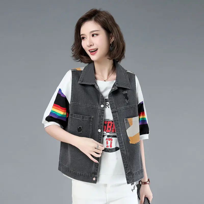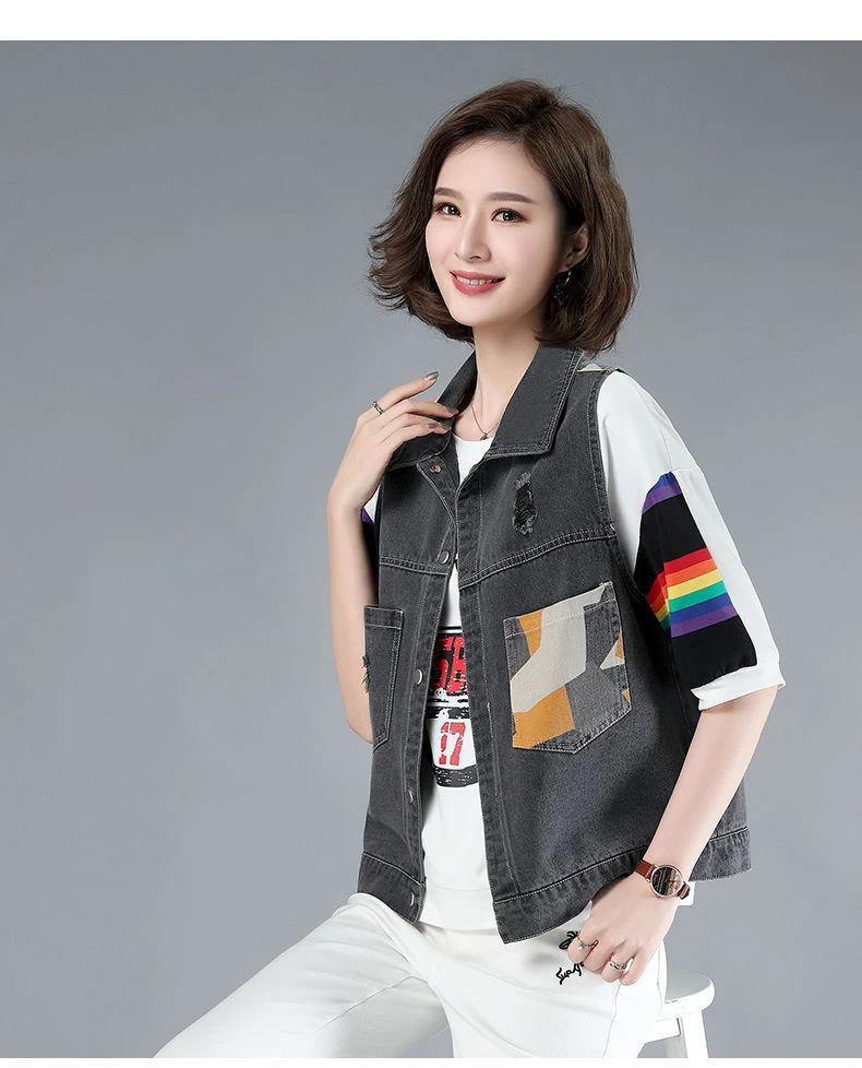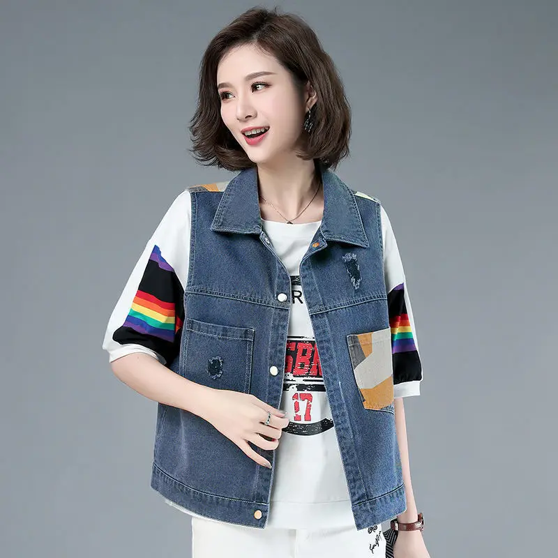 Отзывы о Женский джинсовый жилет с отворотами без рукавов в ковбойском стиле | Женская