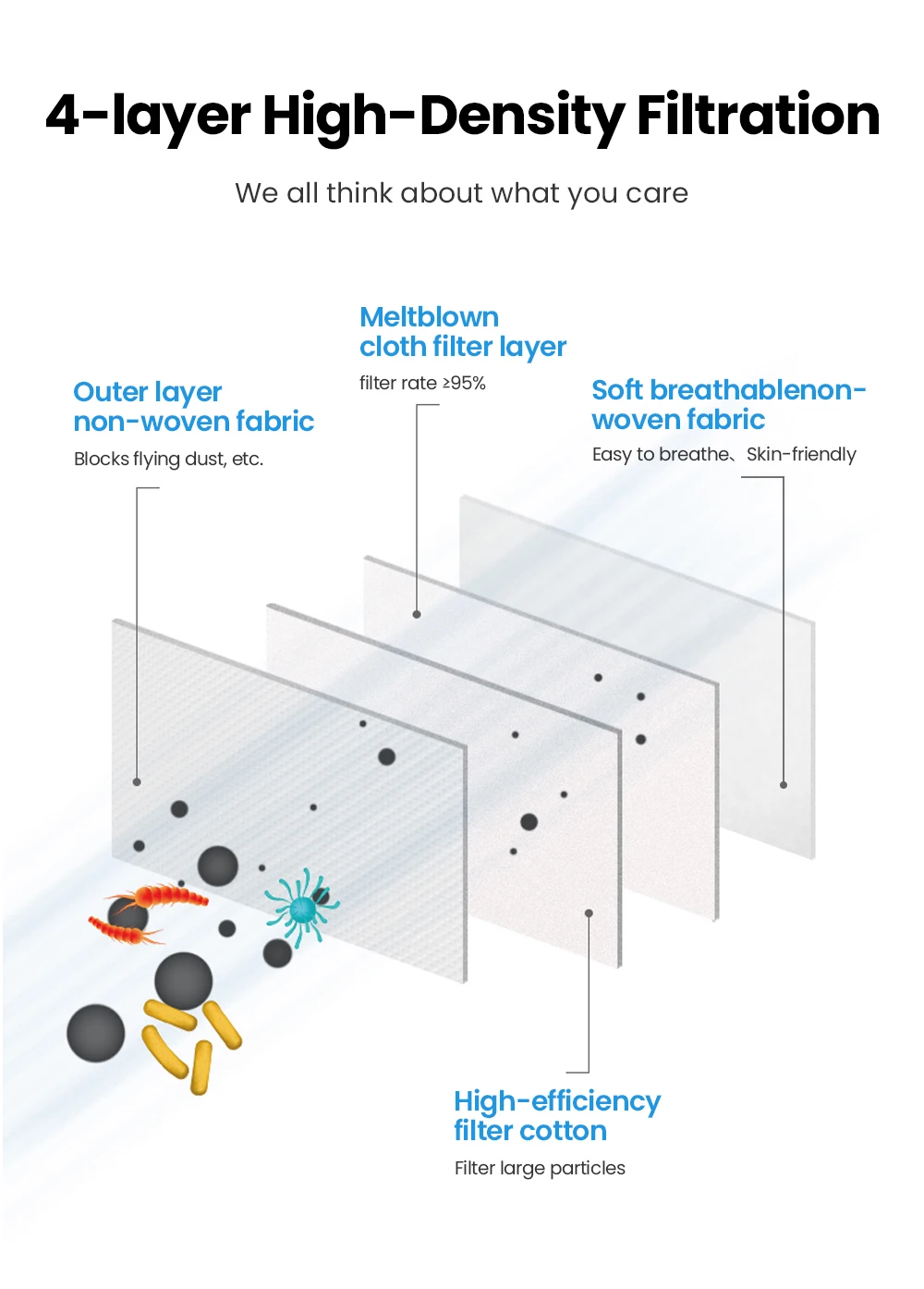 ④ Высококачественный защитный эффект. Его защитный эффект такой же уровень, как и маска KN95, европейская маска FFP2.