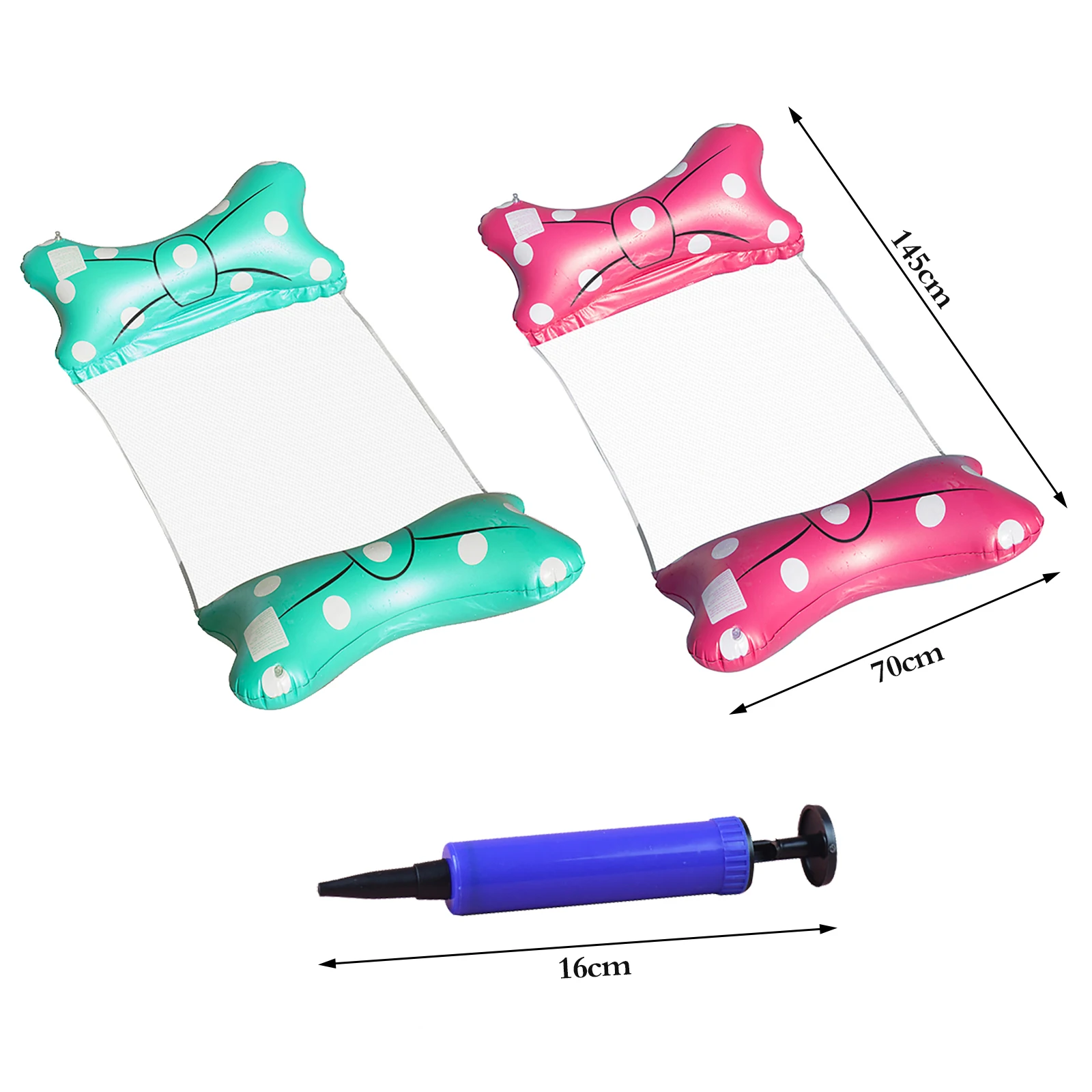 [Премиум качество]: подушки из ПВХ, они толстые и не ломаются легко, и это нейлоновая сетчатая ткань посередине, очень мягкая и удобная. Эргономичный дизайн обеспечивает большую поддержку и комфорт. Полосатая нейлоновая однотонная ткань покрывает надутые части. [Высокая плавучесть]: Грузоподъемность надувного водного гамака до 220 фунтов. Поплавок для бассейна с гамаком 145x70 см/57x27,6 дюйма. Изготовлен из высокоплотного экологически чистого ПВХ и ткани. Подголовник и подставка для ног обеспечивают большую поддержку и комфорт. [Легко надувать]: быстро и легко, как и любой другой надувной плот 1 человека. Это традиционная надувная, каждая сторона имеет свое отверстие для наполнения, и вам не нужен воздушный насос (поставляется с ручным воздушным насосом или продувать его ртом), как только вы не можете выдувать больше воздуха в нем, закройте отверстие для заполнения и нажмите его внутрь. Легко заполняется и предотвращает обратное течение. Воздух внутри не выходит автоматически. [Вес и портативный светильник]: этот продукт идеально подходит для путешествий, вес этого поплавка составляет 300 г, он сдувается, складывается на плоской подошве и достаточно мал, чтобы поместиться в чемодан без каких-либо проблем. Очень легкий светильник для транспортировки. [Незаменимо для лета]: легко доставьте его в любой вечерние бассейн или озеро. Они отлично подходят для удержания воздуха без утечки. Надувные плоты позволяют середине вашего тела оставаться прохладным, замачивая в воде, сохраняя при этом голову и колено на плаву. Вы можете плавать на воде, наслаждаться солнечным светом, чувствовать себя в прохладном мире, наслаждаться и отдыхать в этот прекрасный момент.
