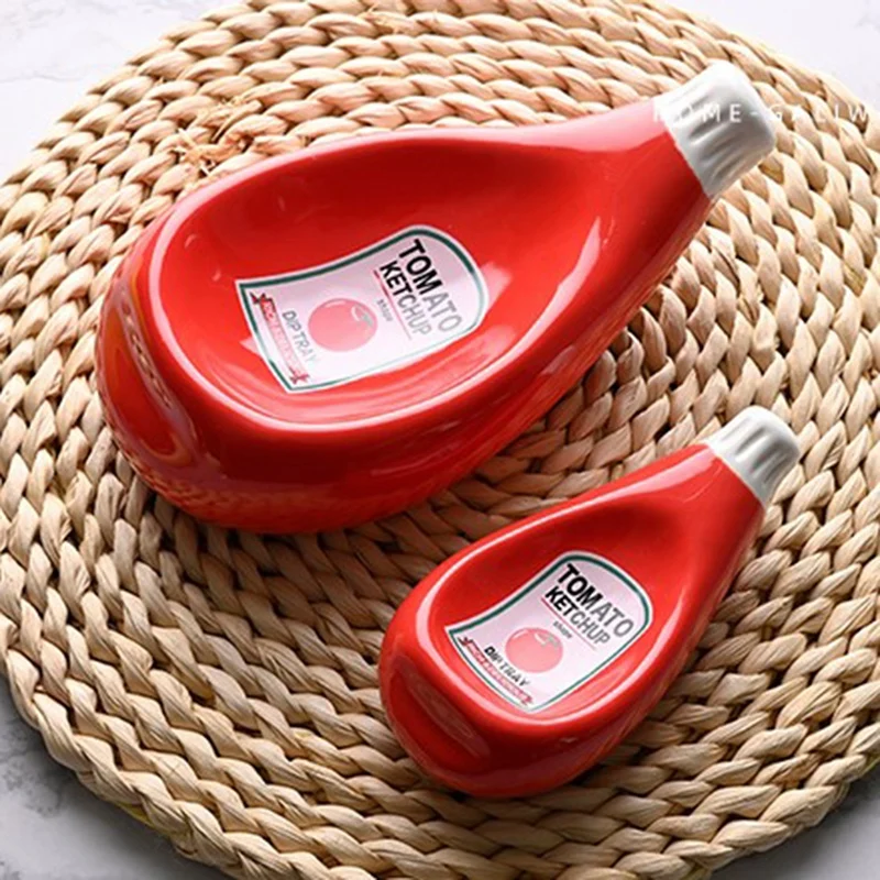 Отзывы о Ceramic Extruded Tomato Sauce Bottle Shape Dish Soy Plate Ketchup Mayonnaise Mustard Seasoning | Дом и сад