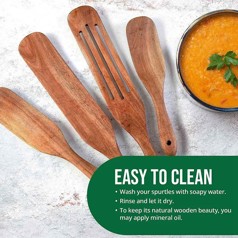 Легко чистить и поддерживать: эти деревянные кухонные принадлежности можно чистить всего за несколько минут. Просто Мойте руки в теплой мыльной воде, затем храните в краску и высушите. Чтобы сохранить природную древесную красоту, можно использовать минеральное масло.