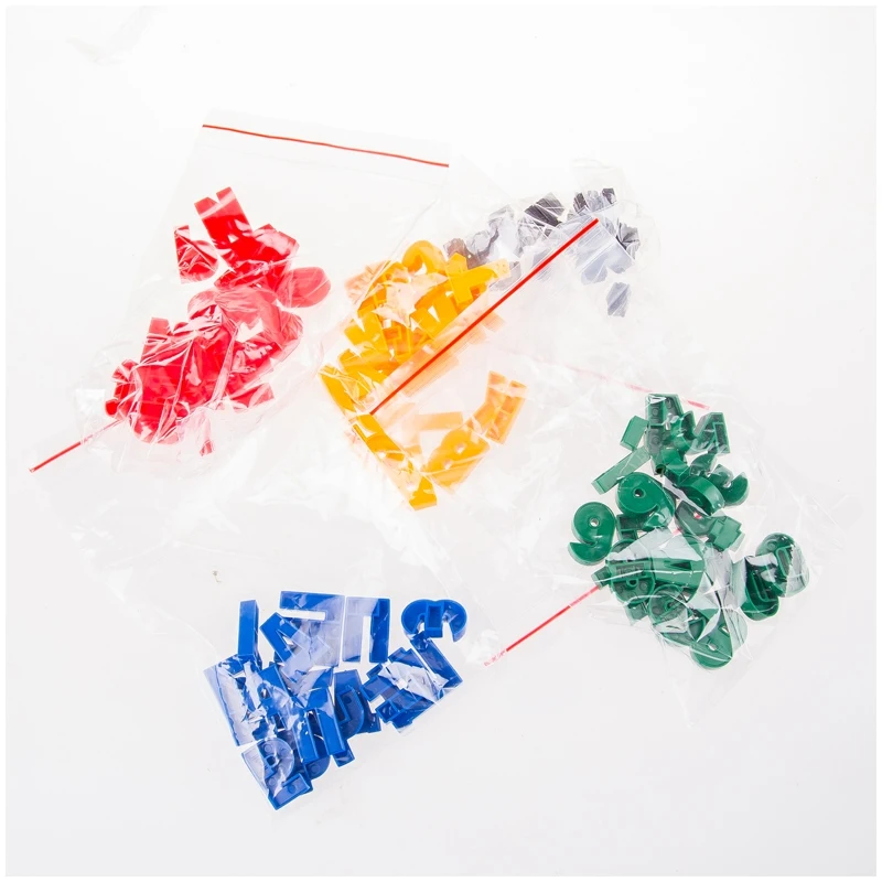 Набор состоит из 79 букв русского алфавита, цифр и знаков, высотой 2,5 см.