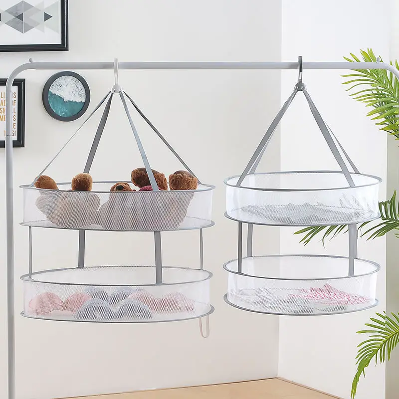 2 шт., складной крючок для корзин, одежда, носки, нижнее белье, плоская Сетчатая Сумка, дышащая сушилка для одежды