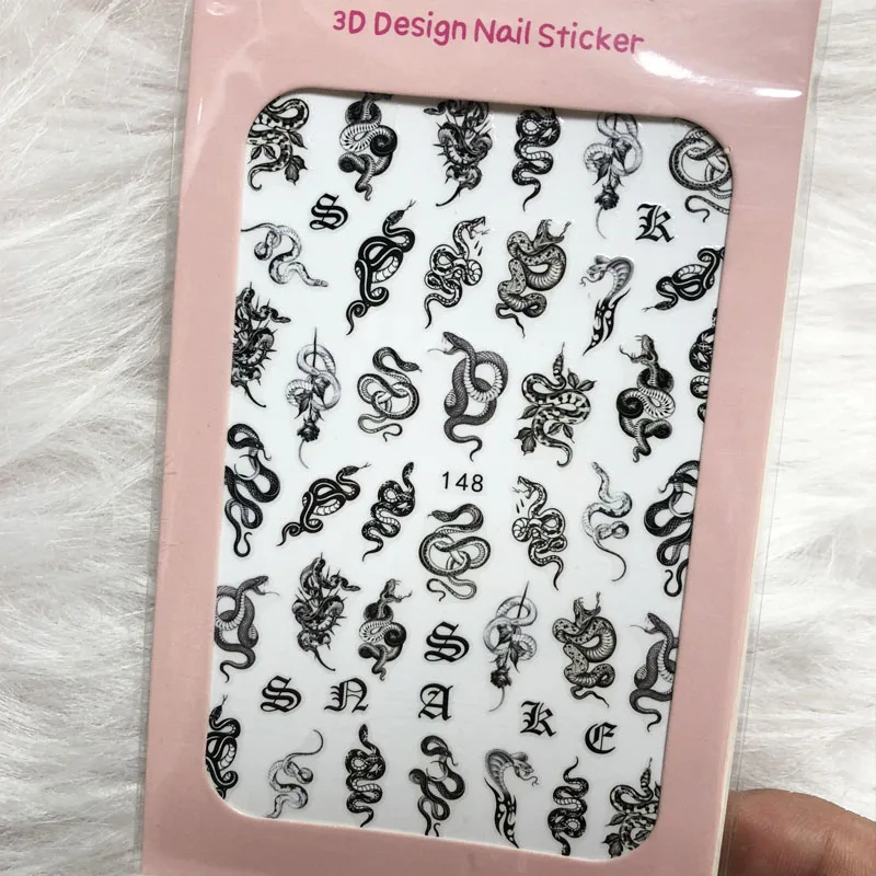1 шт., черный дракон, Змеиный цветок, 3D задний клей, наклейка для дизайна ногтей, сделай сам, украшения для дизайна ногтей, наклейки для декора ногтей CP0168