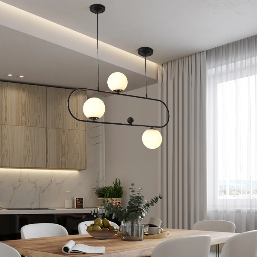 Промышленный стиль прямоугольная люстра художественный дизайн с пряжкой ретро стеклянный шар светильник кафе столовая люстра