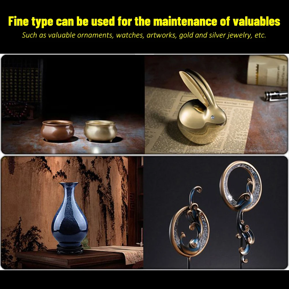 Благодаря своей неабразивной функции, он полностью безопасен и не поврежден для любых металлических изделий, что делает его широко применимым к меди, латуни, стерлингового серебра, алюминия, нержавеющей стали или даже золоту.