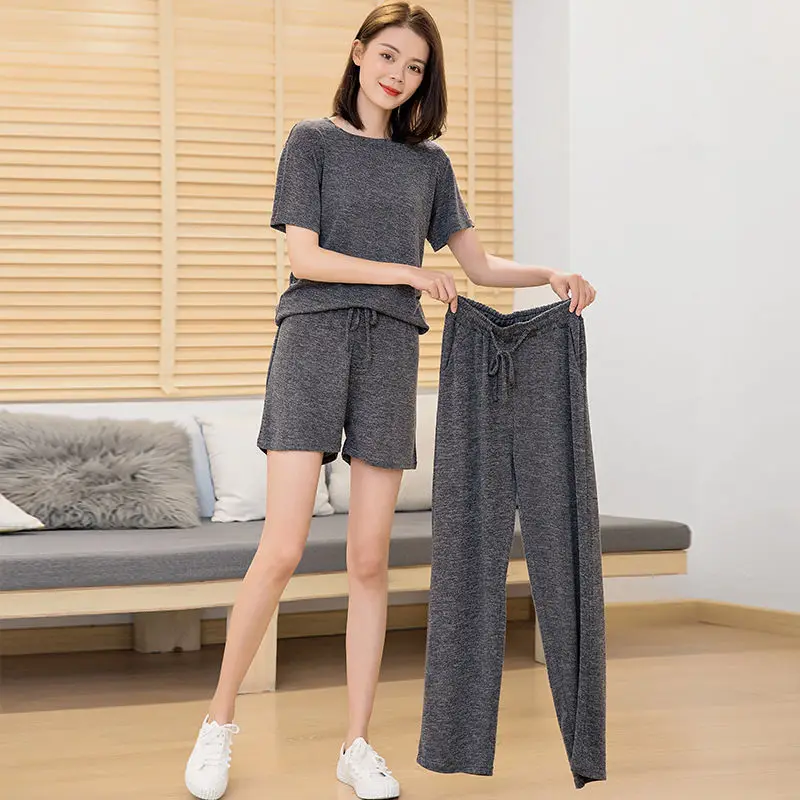 Женская домашняя одежда, комплект из 3 предметов, женский домашний костюм, Летняя женская одежда для отдыха, свободный домашний костюм для женщин, пижамный комплект со штанами, X229