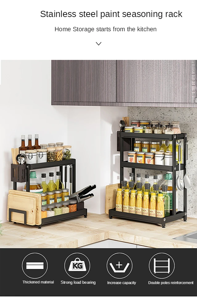 Кухонная полка для специй, столешница из нержавеющей стали, контейнеры для приправ, полка для бутылок, может эффективно организовать вашу кухонную столешницу и сделать кухню аккуратной и красивой.