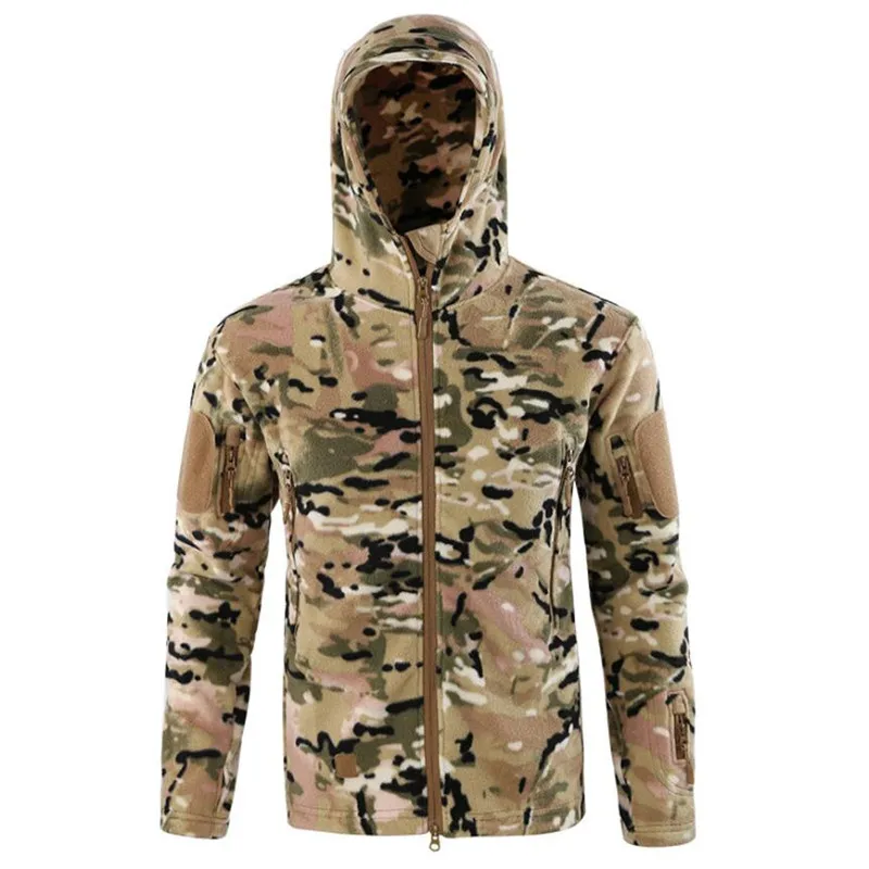 Флисовые теплые куртки для улицы, Походов, Кемпинга, тактическая верхняя одежда, зимняя ветрозащитная ветровка с капюшоном, куртки Camou, одежда для охоты
