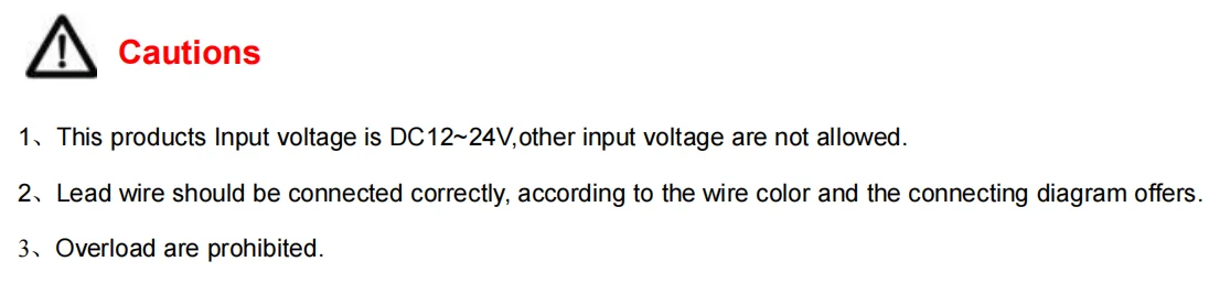 2. Напряжение питания: 12 ~ 24 В постоянного тока