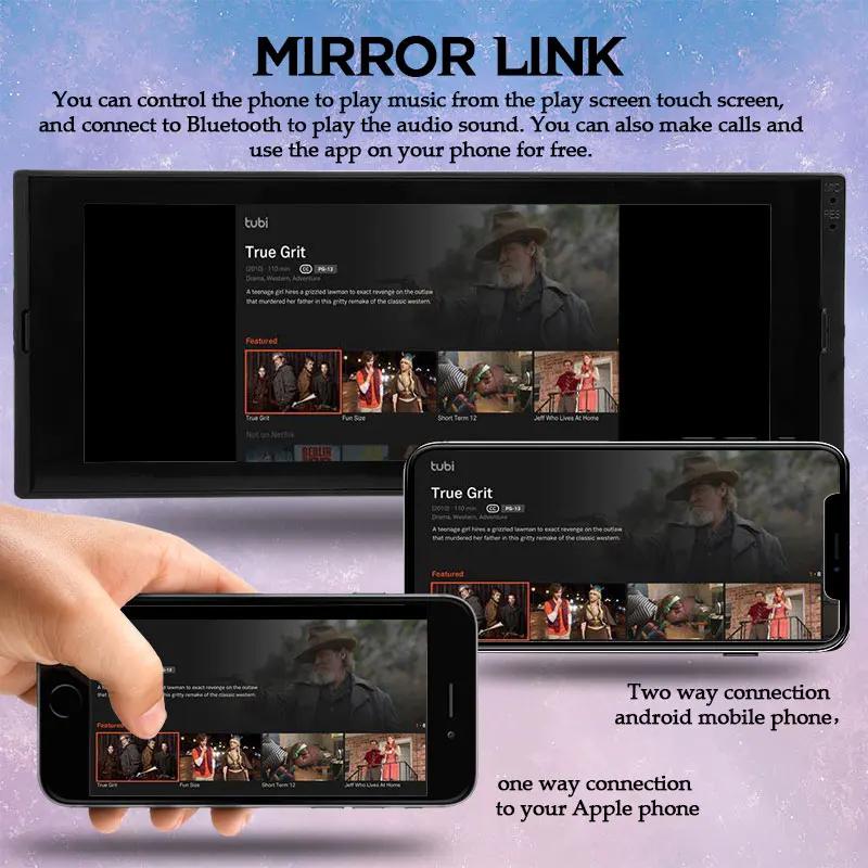 Обновленная двойная система зеркальной связи: IOS/Android зеркальной связи,IOS one-way:IOS поддерживает мобильный телефон с односторонней проекцией на машину,Android двусторонний: Android поддерживает мобильный телефон двустороннее соединение