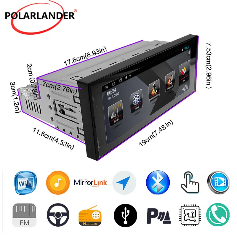 1 Din Car Android мультимедийный плеер 6,9 дюймов сенсорный экран Встроенный carplay bluetooth GPS Wi-Fi универсальный автомобильный радиоприемник