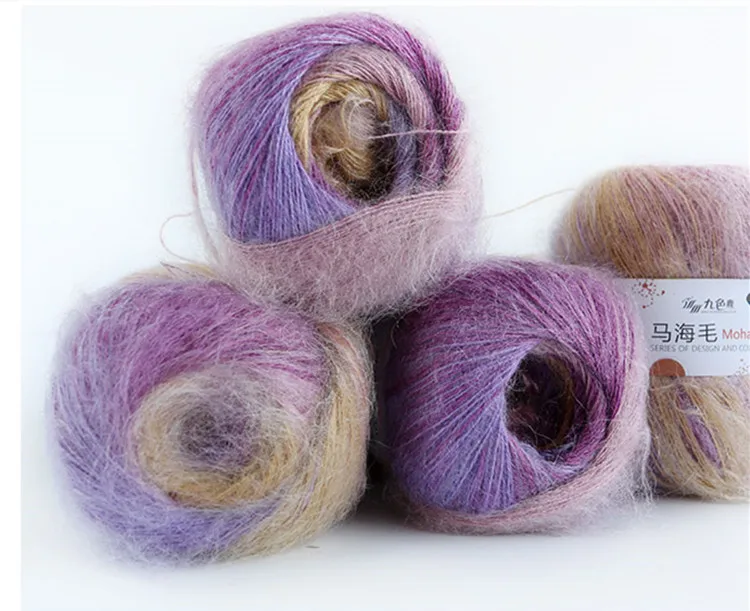 Отзывы о 6 шт. 50 г/шариковый узор окрашенный мохеровый шерстяной вязаный крючком шаль из