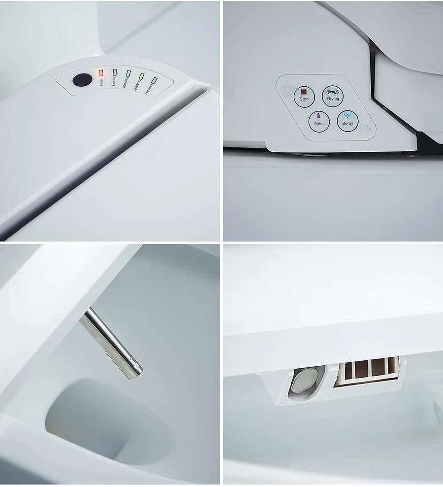 1. Эта крышка для унитаза подходит для 90% туалетов, с длинным и коротким размером. Два стиля: пульт дистанционного управления и боковая панель.