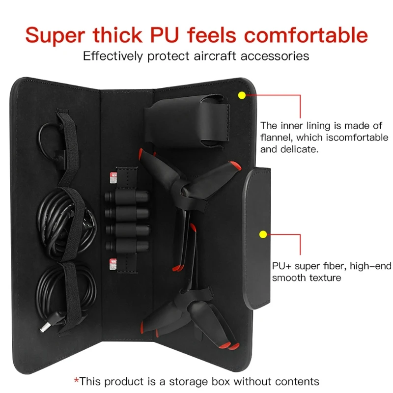 Изготовлен из ПУ и внутренней фланели, Высококачественная гладкая текстура, удобная и посвященная, износостойкая и стойкая к падению, обеспечивая полную защиту аксессуаров дрона.