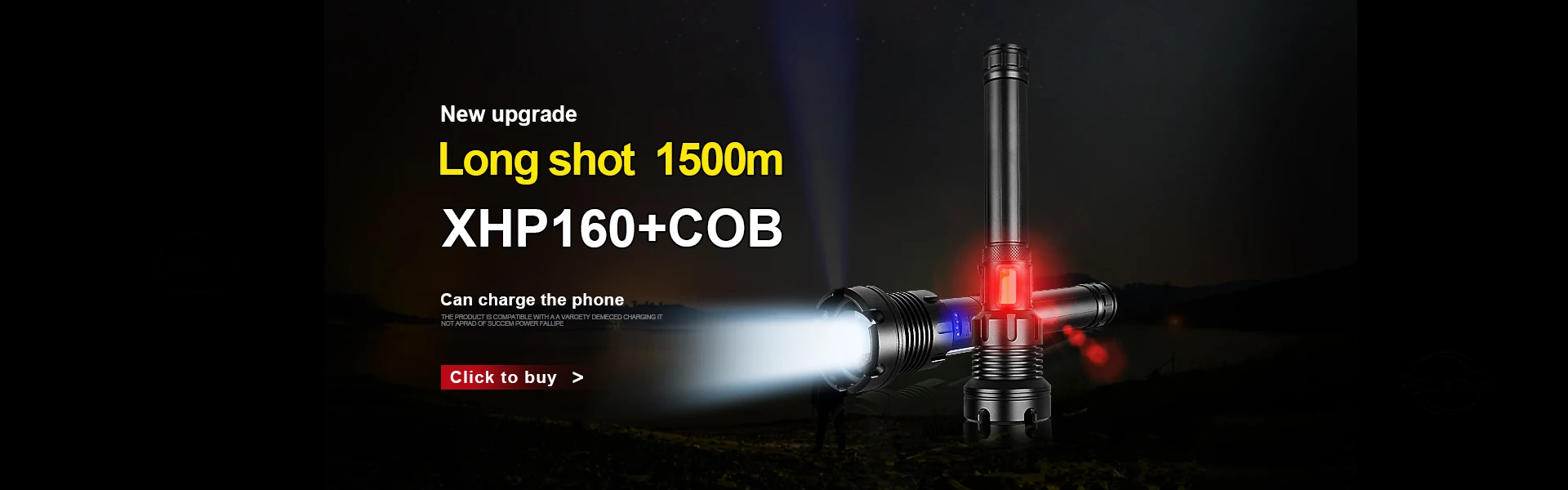 Новый XHP160 перезаряжаемый светодиодный вспышка светильник источник питания: 2 элемента питания * 18650 или 2*26650 батареи, он может загореться ультра-дальнее расстояние 1500 метров и предоставить вам супер яркий белый светильник в темное время суток. Срок службы> 100000 часов.