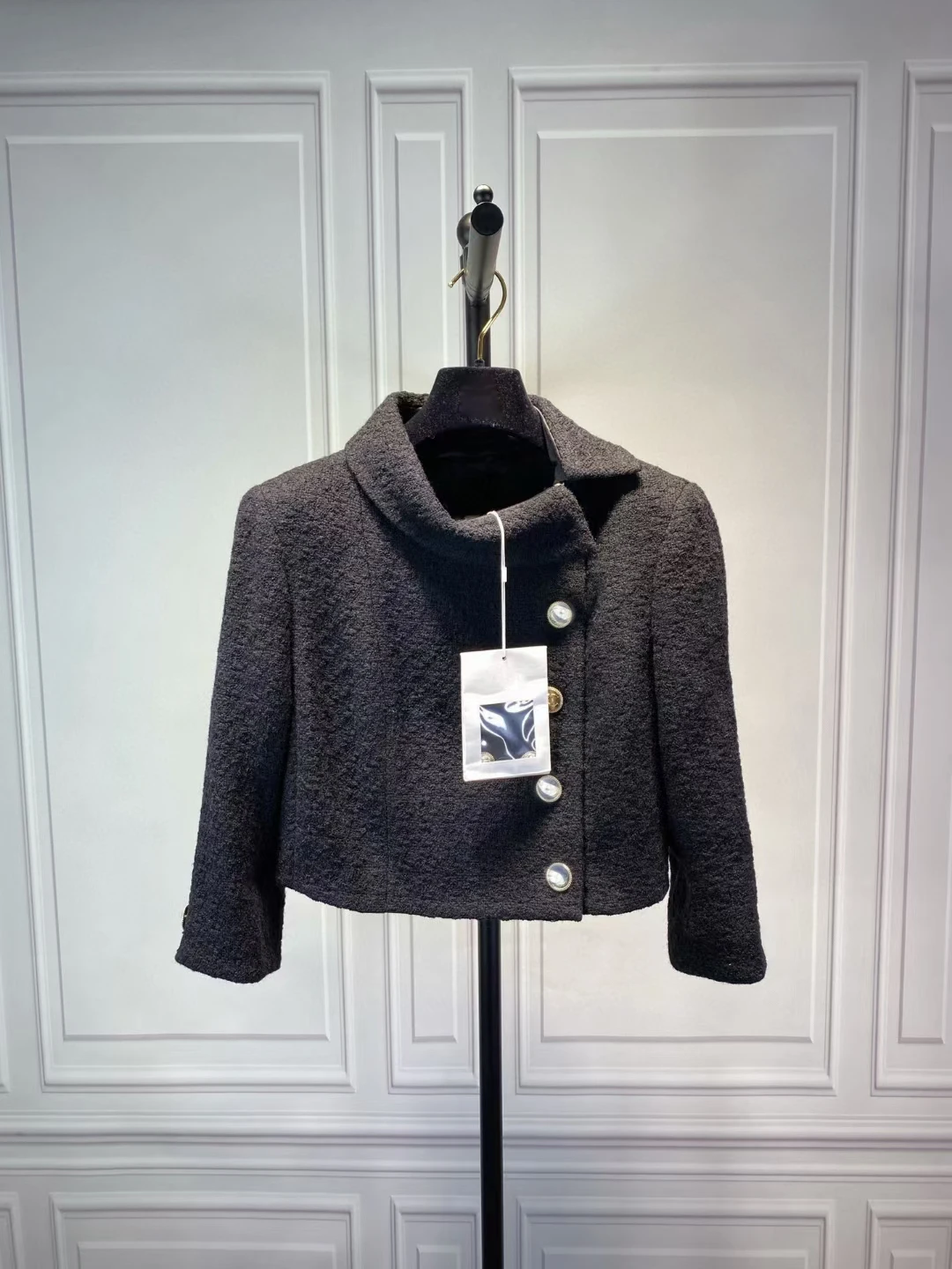 Отзывы о Женская твидовая куртка с уникальным воротником классическая черная модель 3xl на