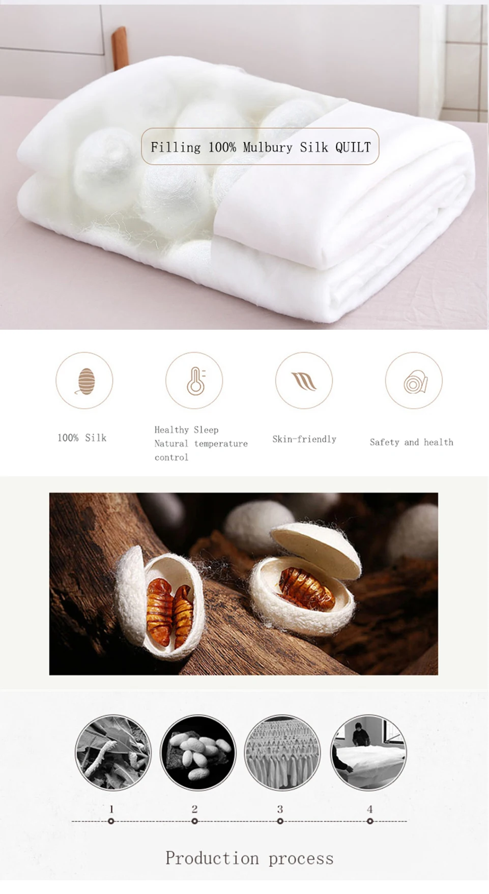 * Материал: наполнитель 100% высококачественный натуральный шелк тутового шелкопряда, чистый мягкий шелк дышащий, естественный и гладкий. Уход за кожей тела.