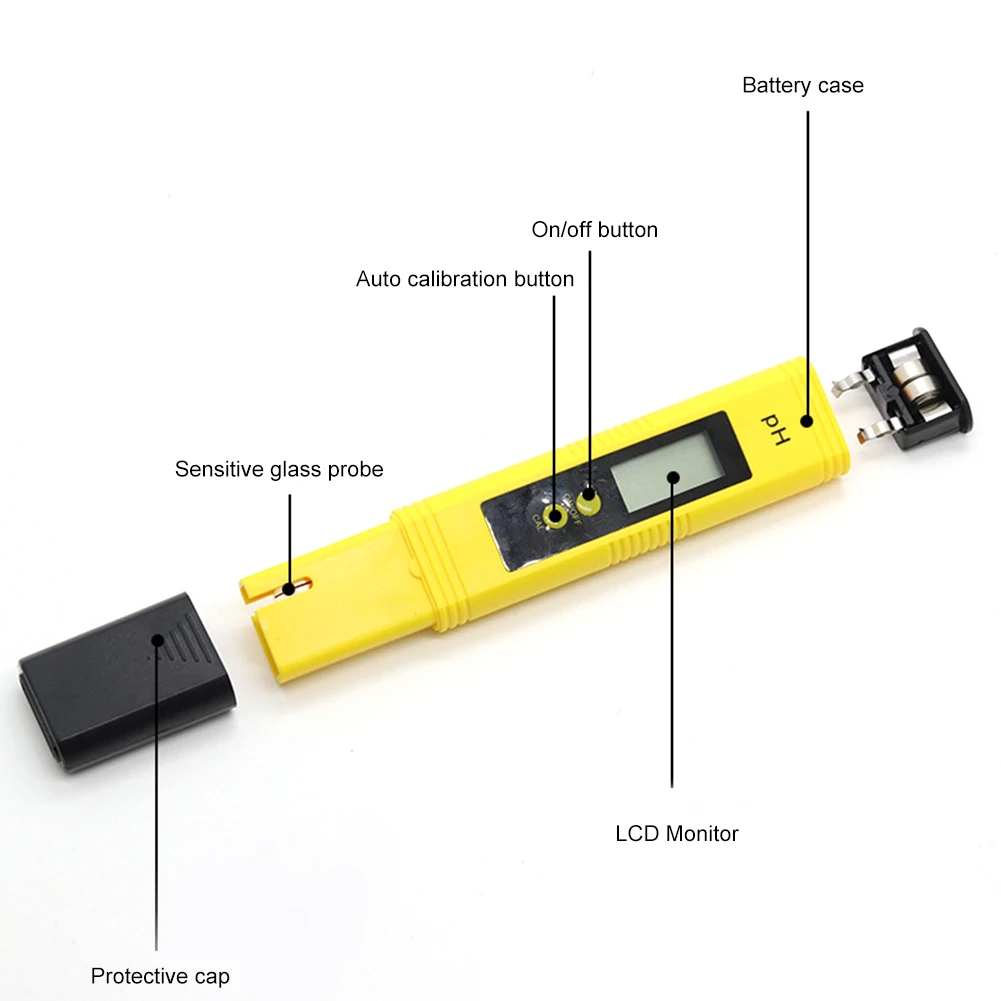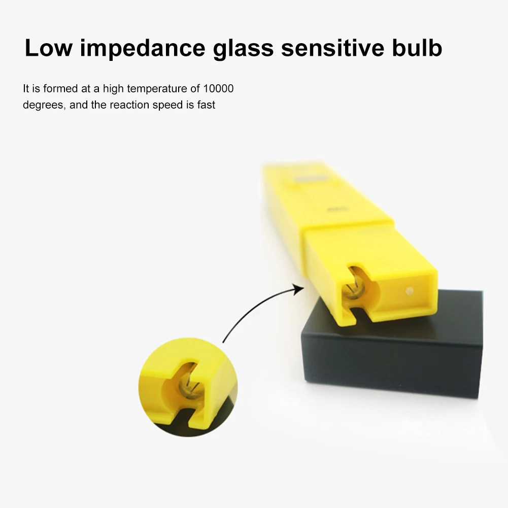 -Обратите внимание, что датчик PH pen изготовлен из стекла, который является хрупким. Пожалуйста, не сталкивайтесь с вещами. После повреждения его нельзя заменить. Вы должны хорошо защитить зонд. После использования аккуратно отсасывайте воду на зонде с помощью абсорбирующей бумаги.