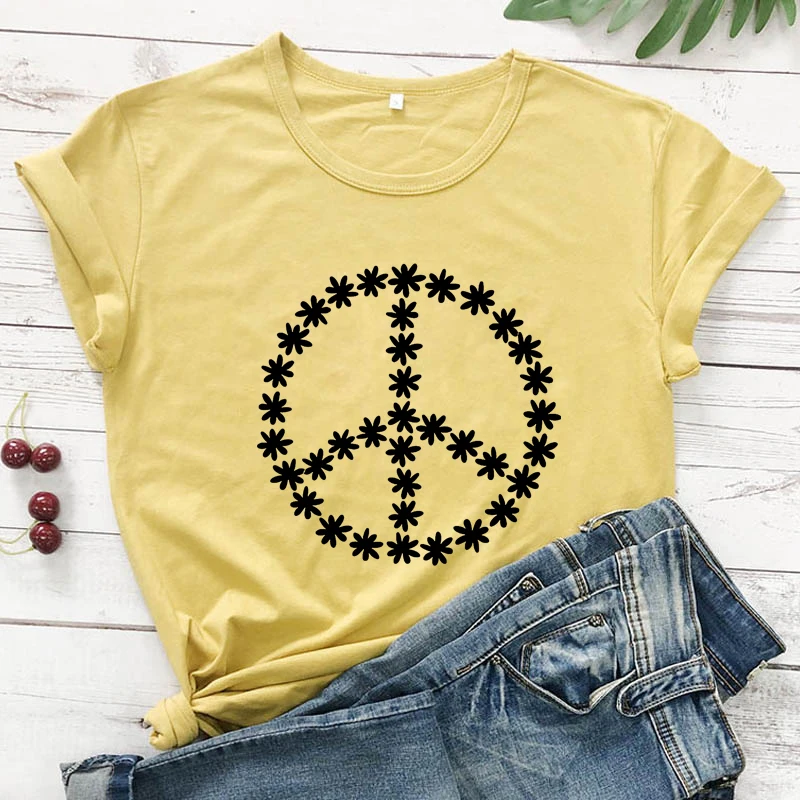 Отзывы о Футболка с надписью Daisy Peace Милая женская футболка Love в стиле бохо графическим
