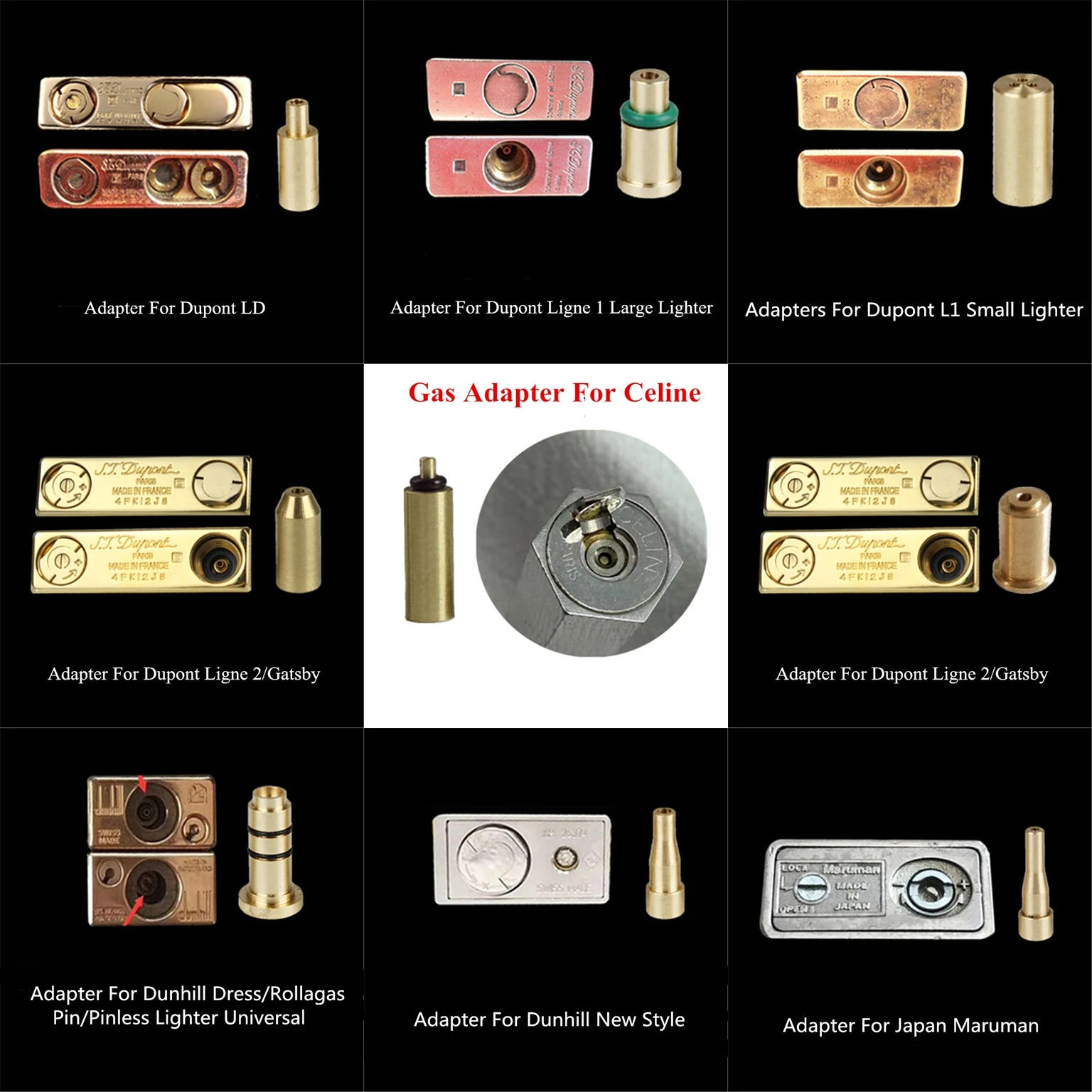 Полный выбор многоразовые латунные медные форсунки заправка бутановый газовый адаптер для Dunhill Dupont и другие зажигалки запасные части