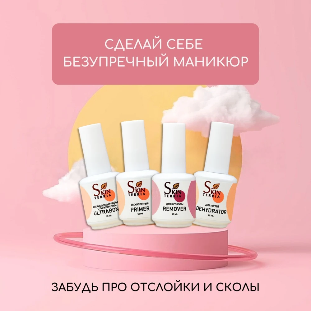 SKINTERRIA - это забота о Вас и Вашей красоте. Наше производство находится в России, и мы гордимся, что изготавливаем действительно эффективные косметические средства для маникюра и педикюра, для ухода за кожей, депиляции и парафинотерапии.