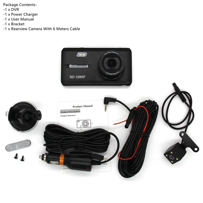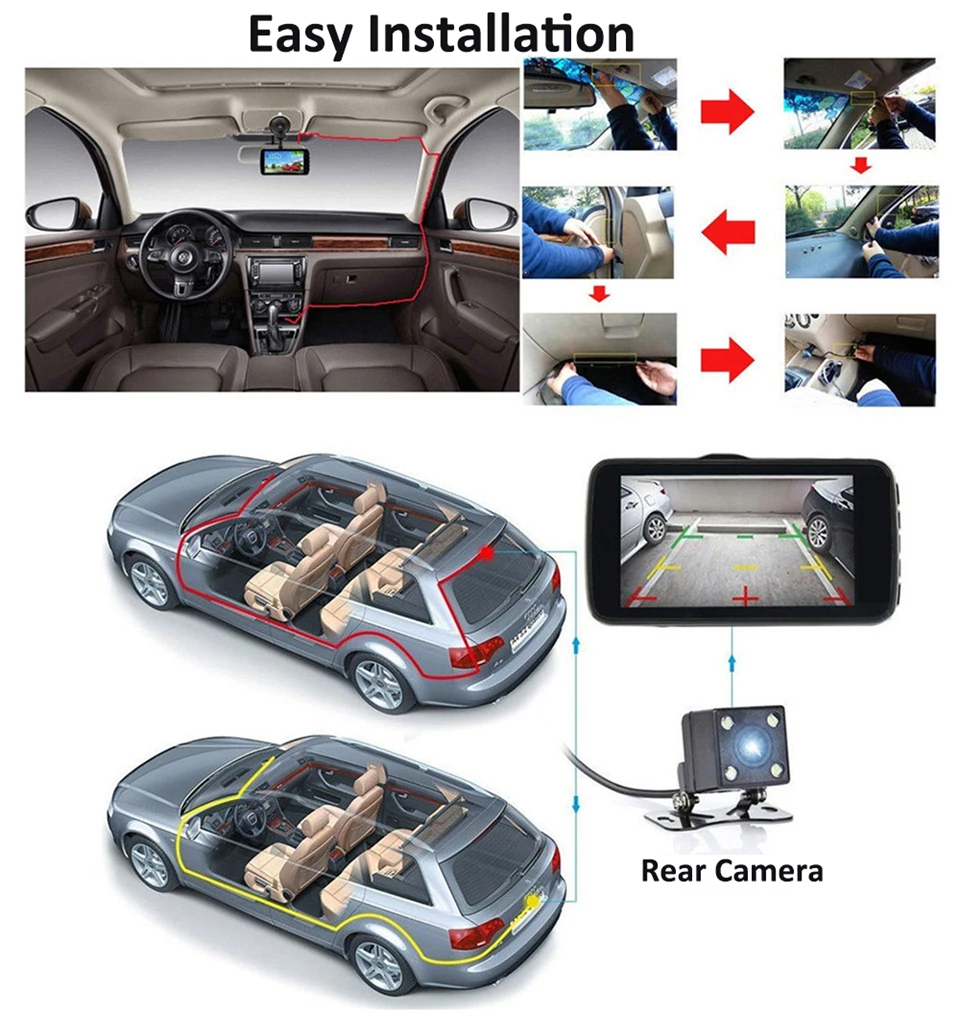 XYZCAM Full HD 1080P двойной видеорегистратор 4,5 дюйма сенсорный видеорегистратор DVR Передняя камера и камера заднего вида широкий угол обзора 170 градусов